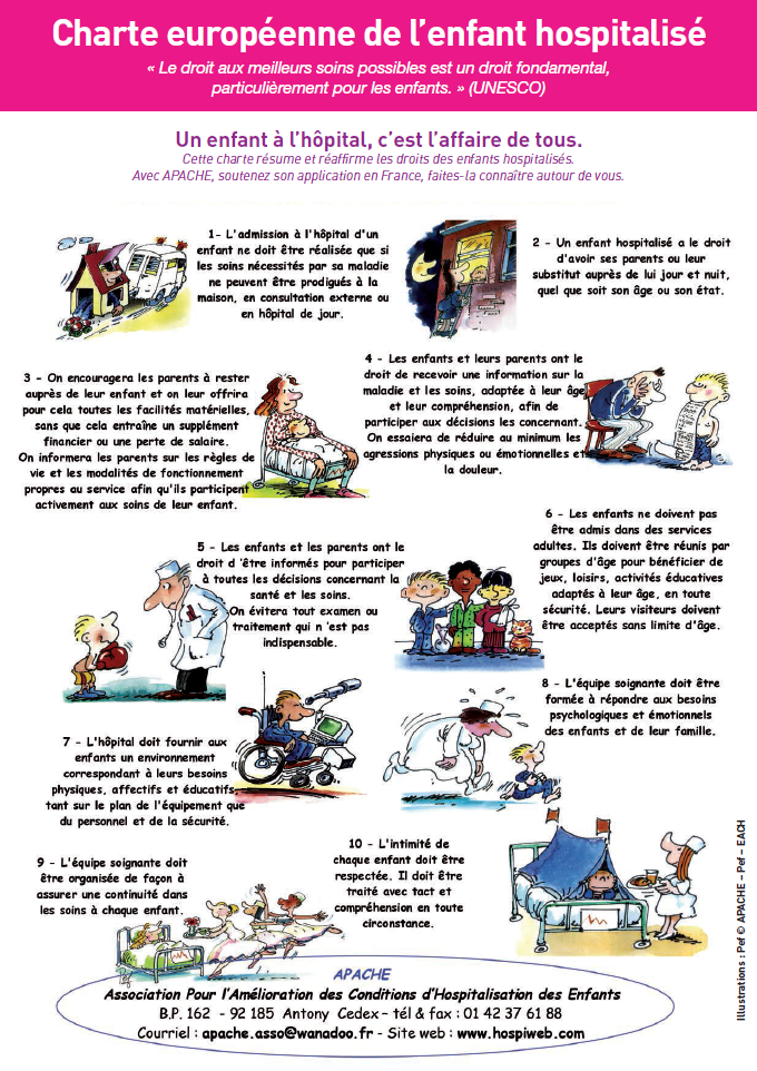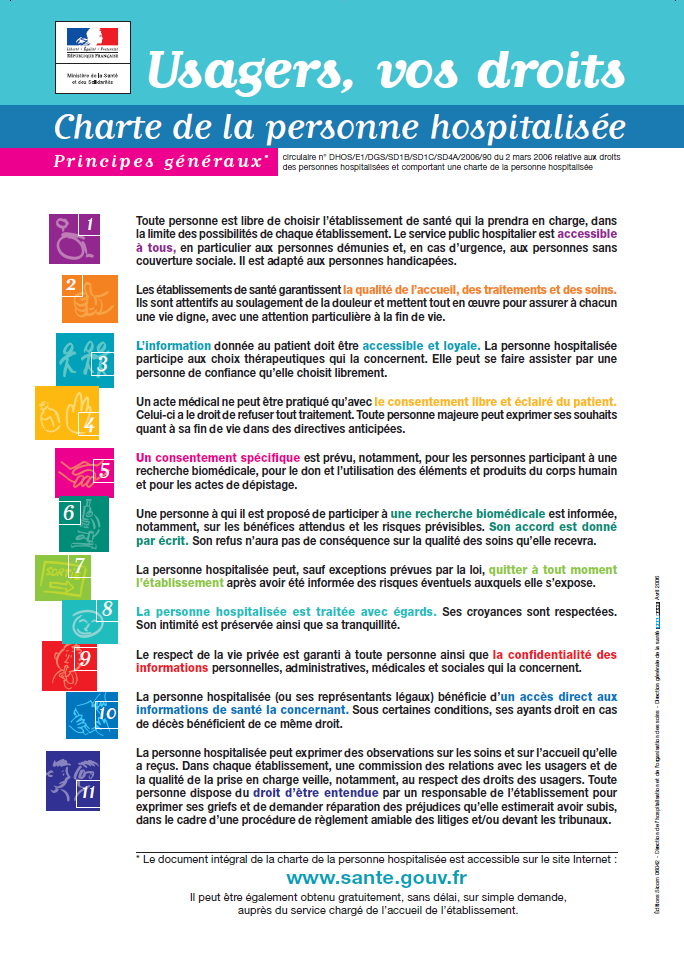 Plusieurs chartes relatives aux droits des personnes hospitalisées sont à votre disposition.